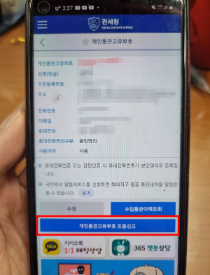 핸드폰으로 개인통관고유부호 조회 및 수정, 재발급하는 방법 알아보겠습니다.
