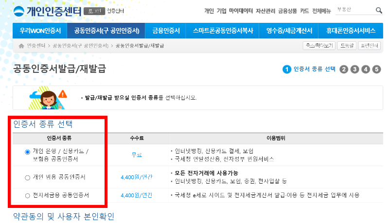 전자입찰이나 주식 거래를 하지 않으시는 경우, 수수료 무료인 인증서를 선택하시면 됩니다.
