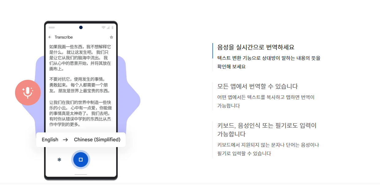 - 구글 번역기는 음성을 입력하면 자동으로 번역해주는 기능을 제공합니다.