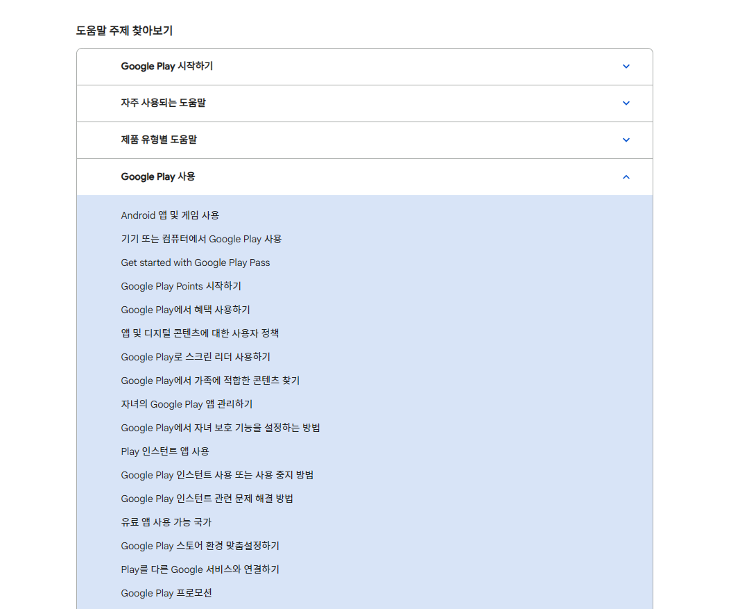 - 구글 플레이 공식 고객센터 웹사이트 접속