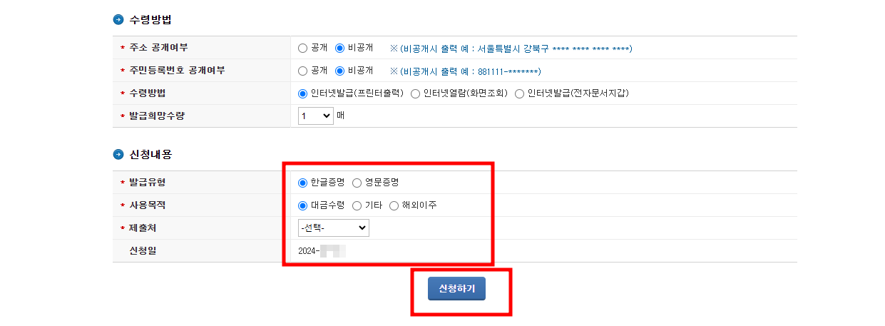 참 쉽죠? 인터넷 발급시 별도 수수료가 없고, 5분도 걸리지 않습니다.