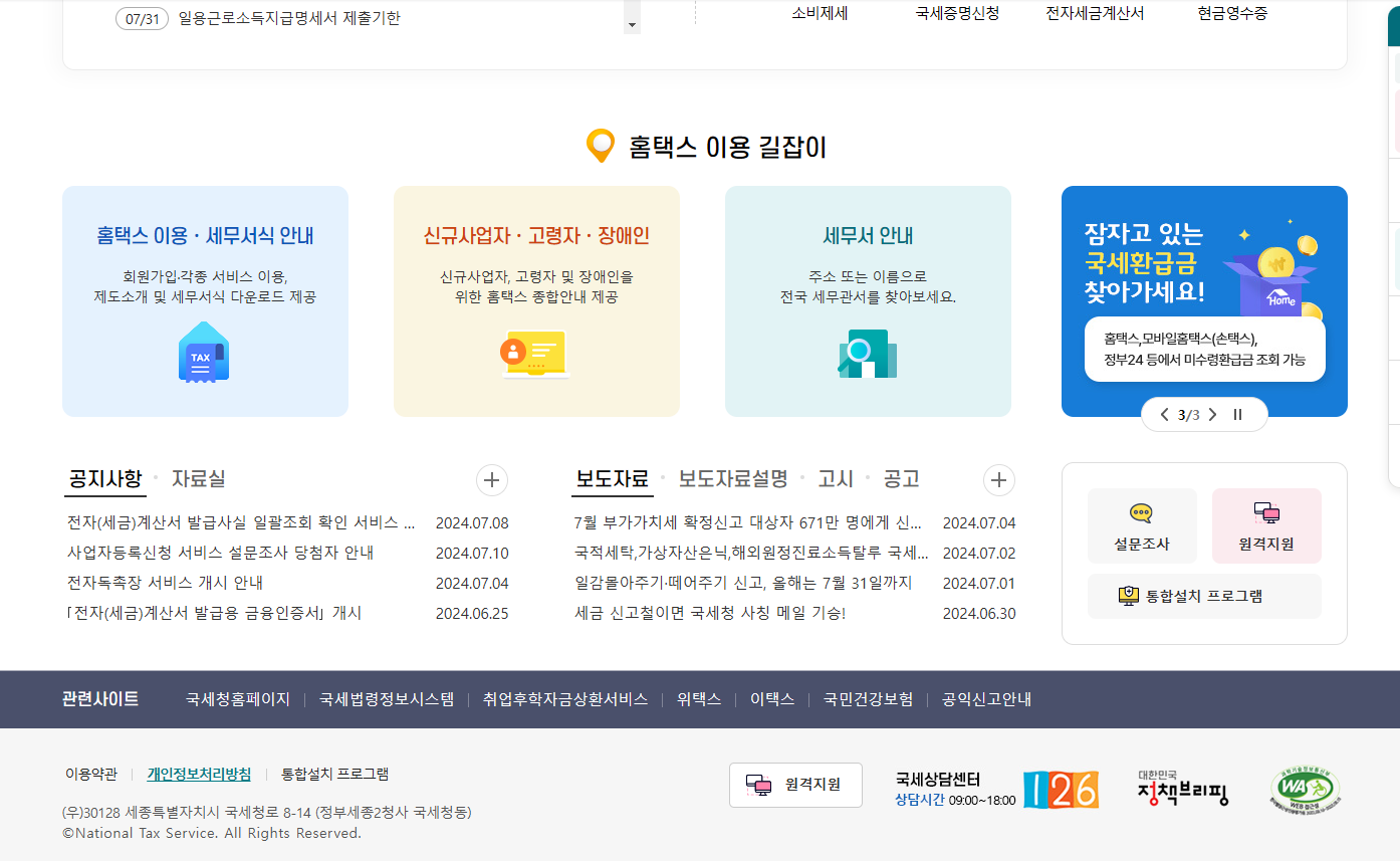 질문 2) 국세완납증명서는 국세청 홈택스에서만 발급되나요?