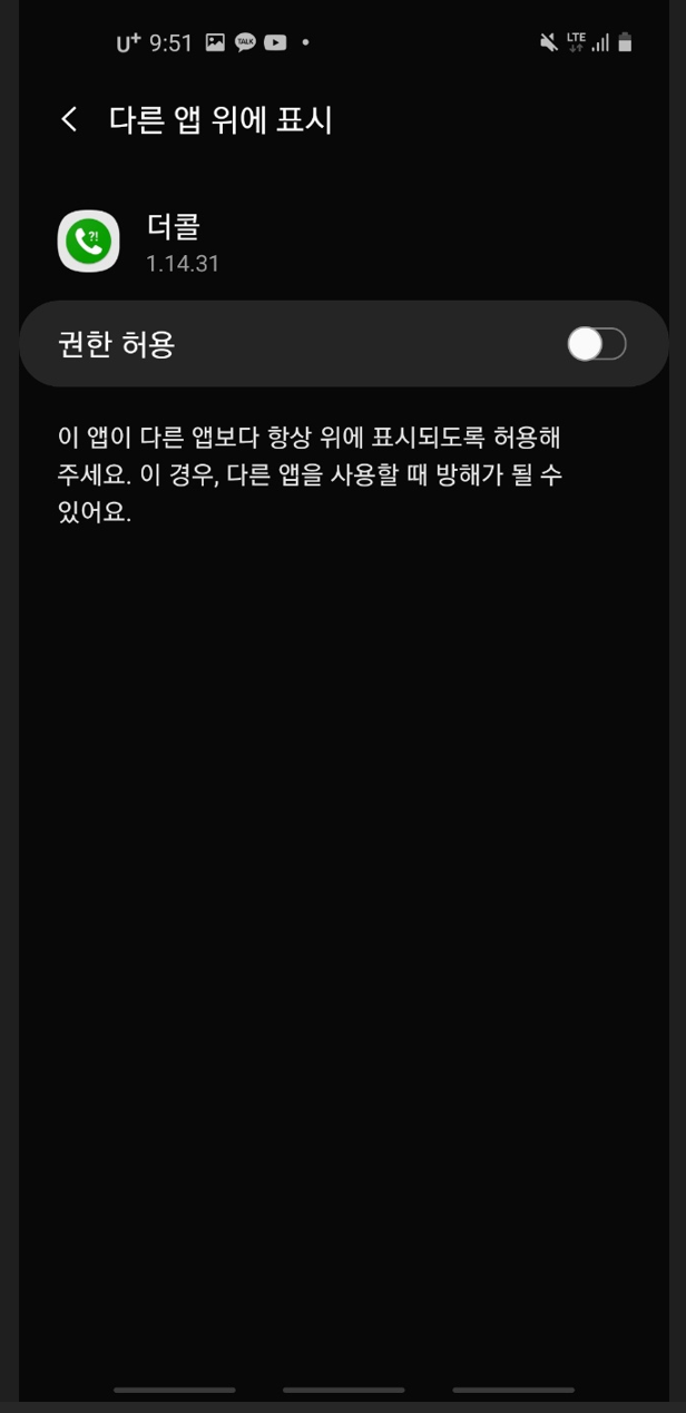 4. 앱이 잘 작동될 수 있도록 다른 앱 위의 표시 권한도 허용해 줍니다.