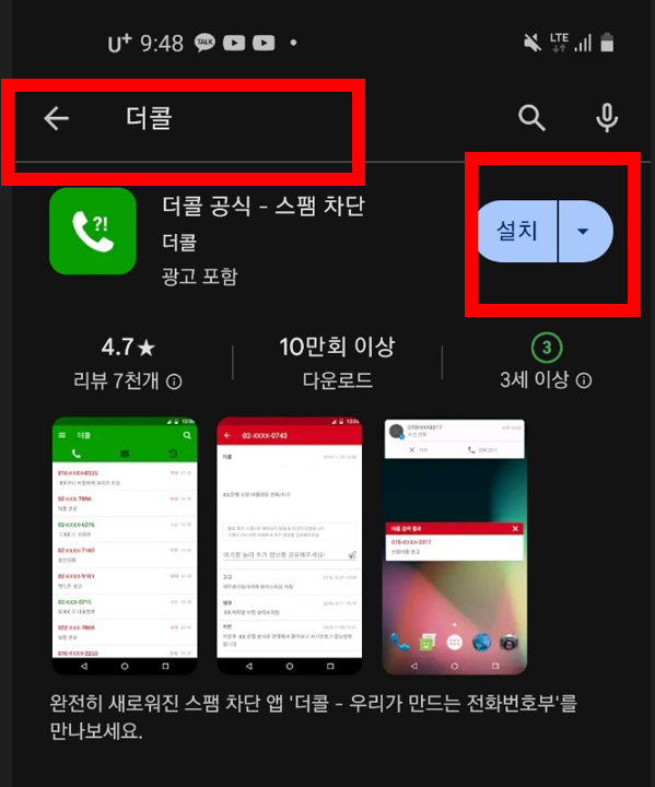 1. 구글플레이에서 더콜을 검색합니다. 설치를 선택합니다.