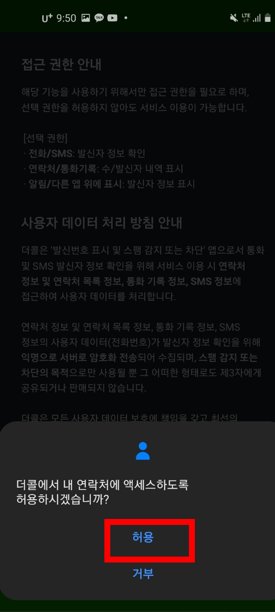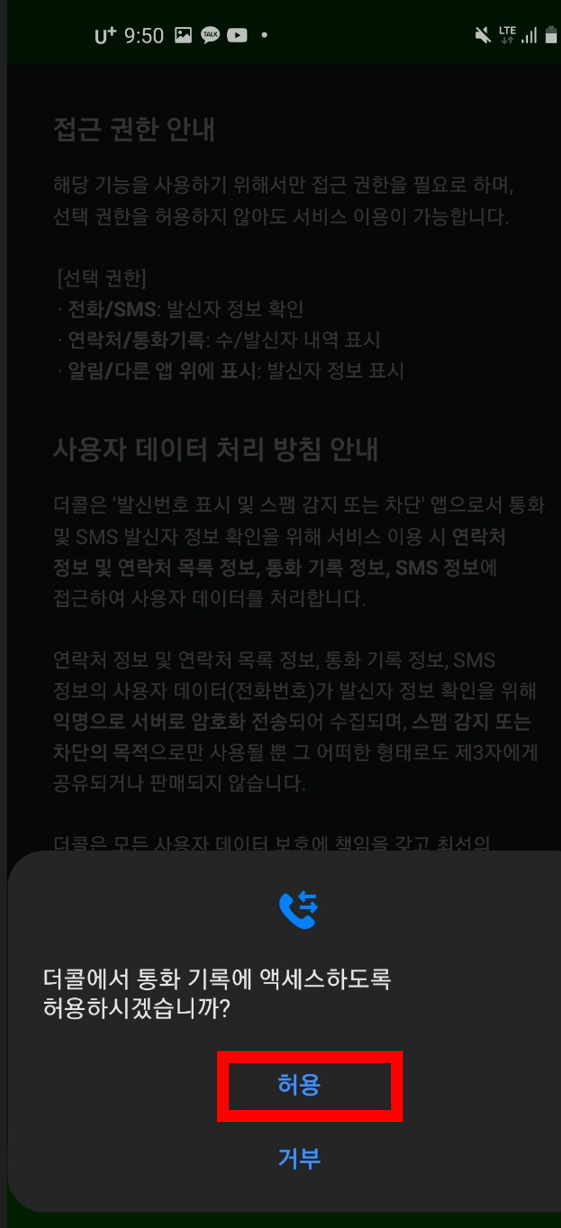 3. 더콜 앱이 핸드폰에서 잘 작동될 수 있도록, 권한을 허용해 줍니다.