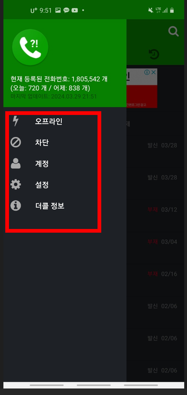 5. 설정이 완료되면, 스팸전화 검색 및 표시가 가능해집니다.