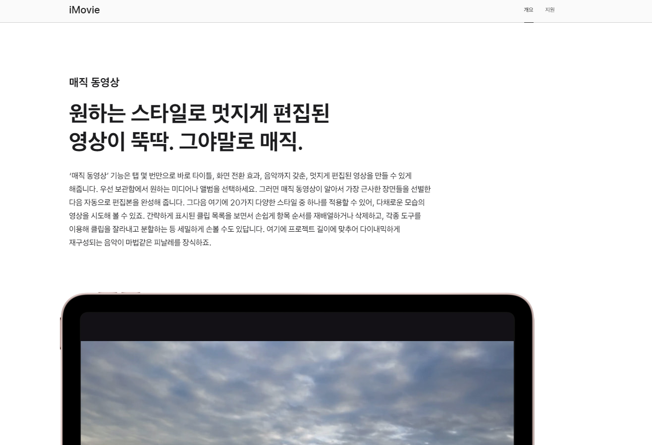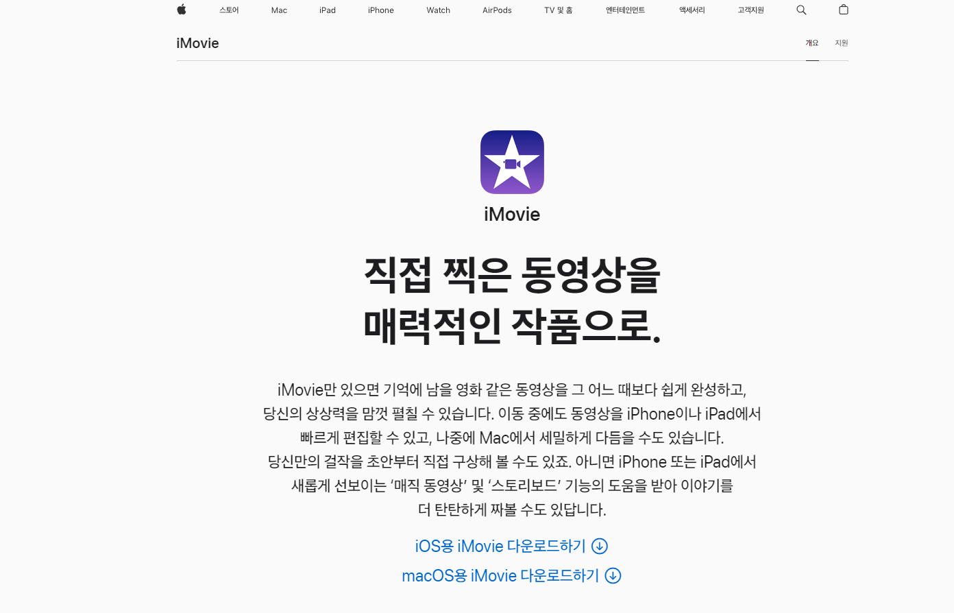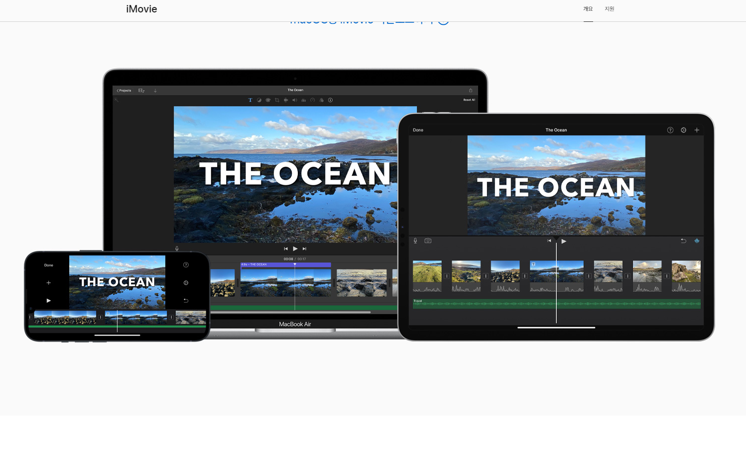 iOS용 iMovie와 macOS용 iMovie를 사용하면 당신의 사진과 동영상 클립을 멋진 영화나 예고편으로 만들 수 있고 전 세계와 공유할 수도 있습니다.