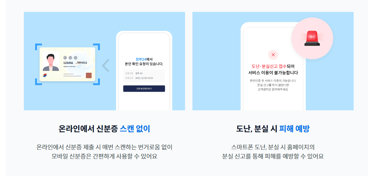 분실 및 도난 방지: 물리적인 신분증을 잃어버리거나 도난당할 염려가 줄어들고, 모바일 신분증의 경우 쉽게 재발급이 가능합니다.