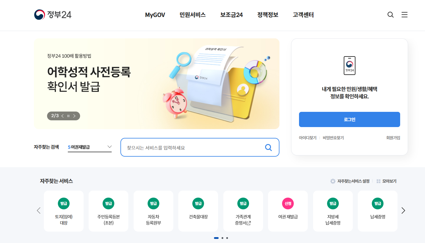 정부24앱을 통해서 핸드폰에 바로 발급하실 수 있습니다.