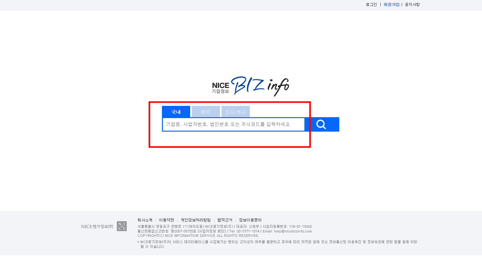 나이스신용평가에서 운영하는 나이스비즈인포를 통해서 상호, 사업자등록번호 조회 할 수 있습니다.