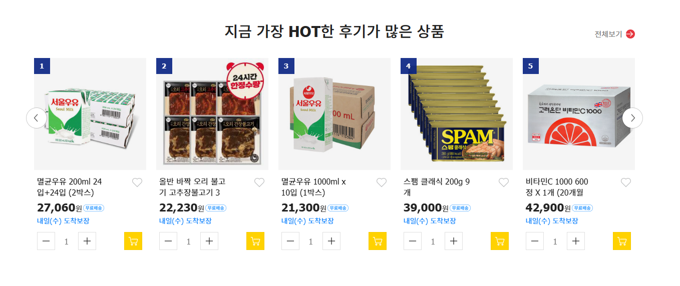 전자기기, 생활용품, 패션, 식품 등 수백만 개의 상품이 등록되어 있어 원하는 상품을 손쉽게 찾을 수 있습니다. 다양한 판매자가 등록된 마켓으로 가격 경쟁이 이루어져 합리적인 가격에 구매할 수 있습니다.