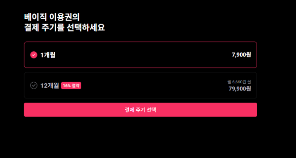베이직 요금제 보다 프리미엄 요금제가 기능적인 혜택이 더 많네요. 프리미엄 요금제를 신청해서 왓챠 시청하려는 분들과 1/N 요금을 분담하는 것도 나쁘지 않을 것 같습니다.