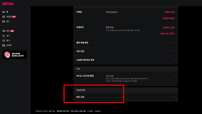 1. https://watcha.com/ 계정에 로그인 하여 오른쪽 상단 내 프로필을 선택합니다.