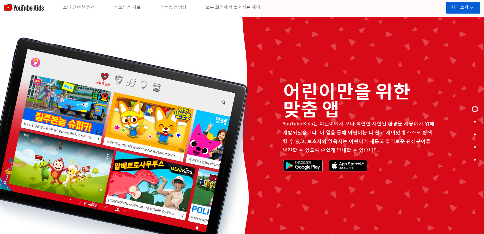 유투브키즈(YouTube Kids)는 어린이를 위한 독립된 앱으로, 연령에 맞는 안전하고 즐거운 콘텐츠를 제공합니다. 부모는 시청 시간 제한, 콘텐츠 관리, 검색 기능 설정 등을 통해 자녀의 YouTube 사용을 관리할 수 있습니다. 이 앱은 교육적인 비디오부터 재미있는 쇼까지 다양한 어린이 친화적 콘텐츠를 제공합니다.
