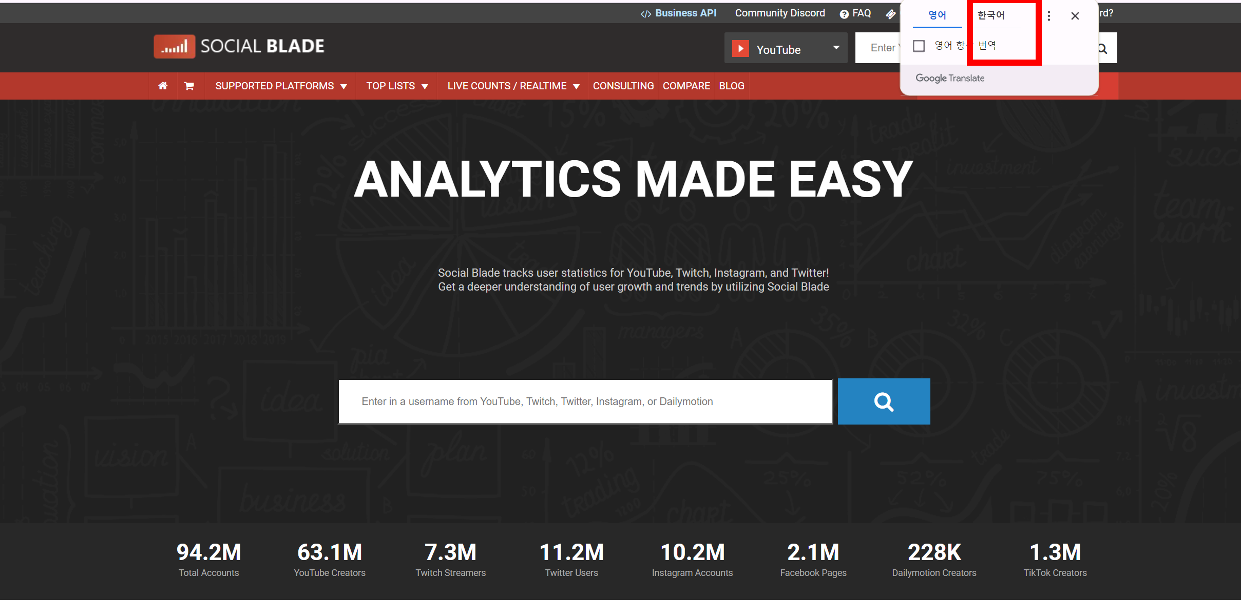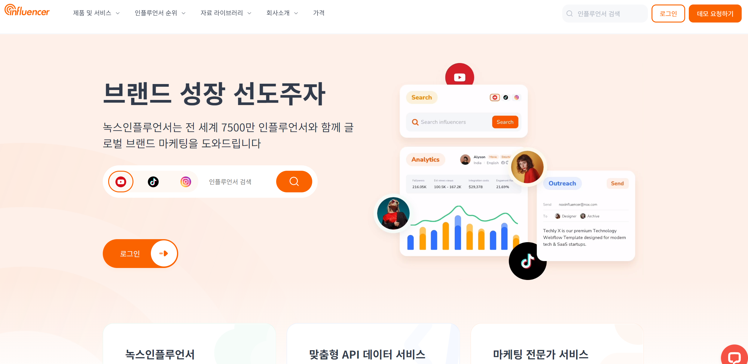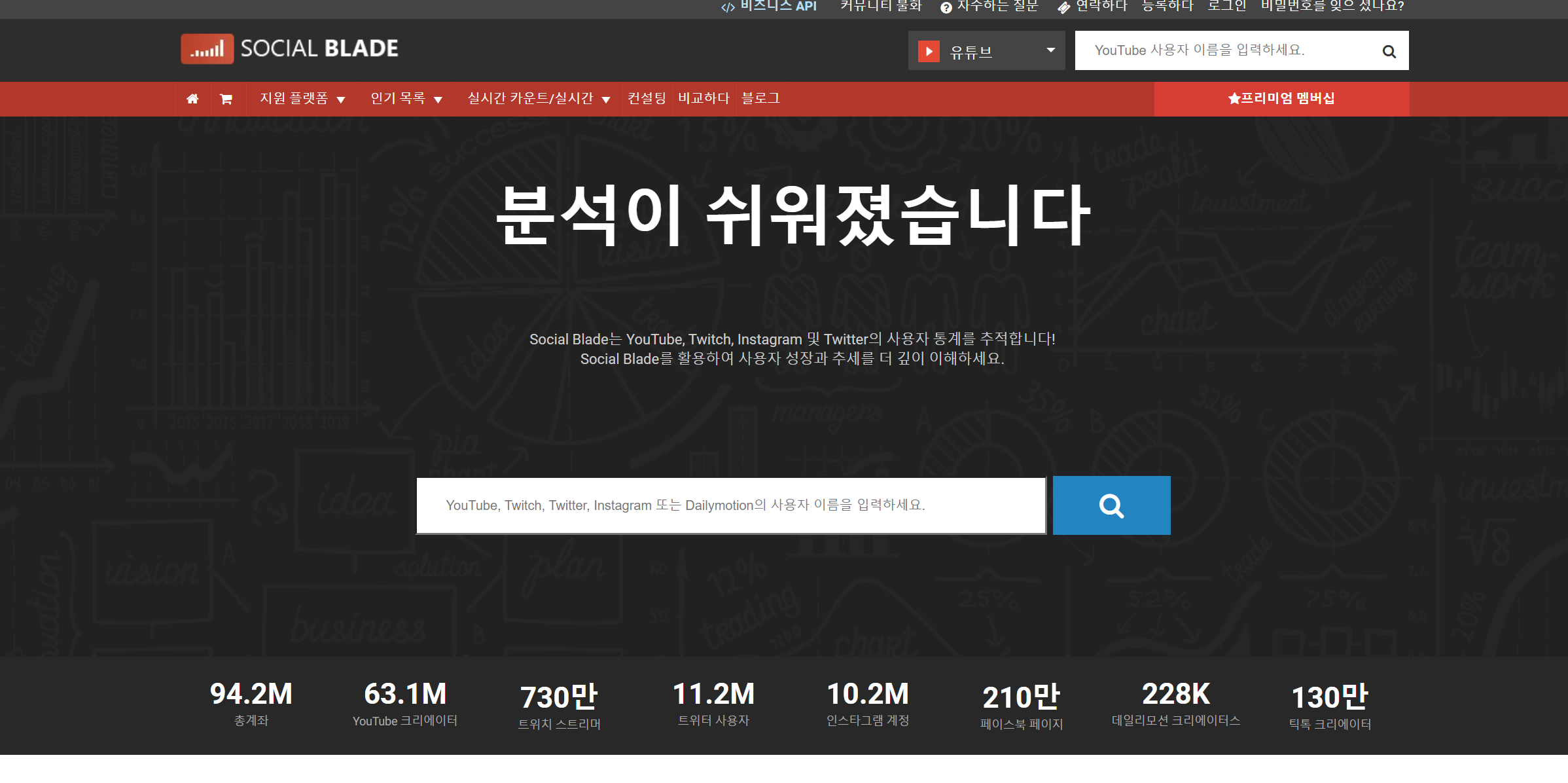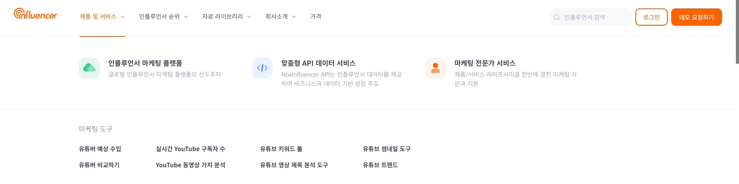 유튜브 뿐만 아니라 인스타그램, 틱톡 등을 분석해 줍니다.