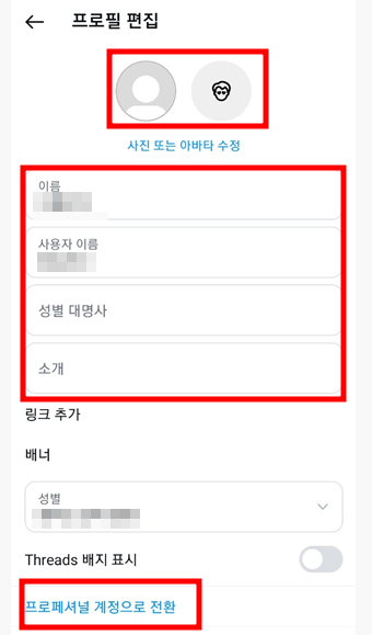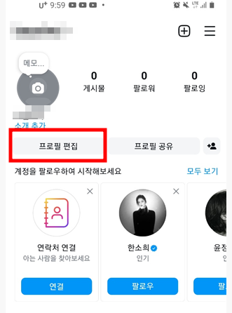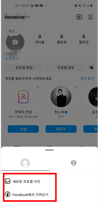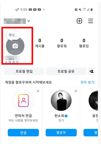 다음으로 프로필 사진을 설정합니다. 인스타그램 계정에서 동그라미 사진으로 표시된 부분을 선택합니다.
