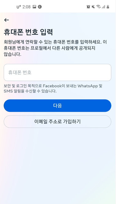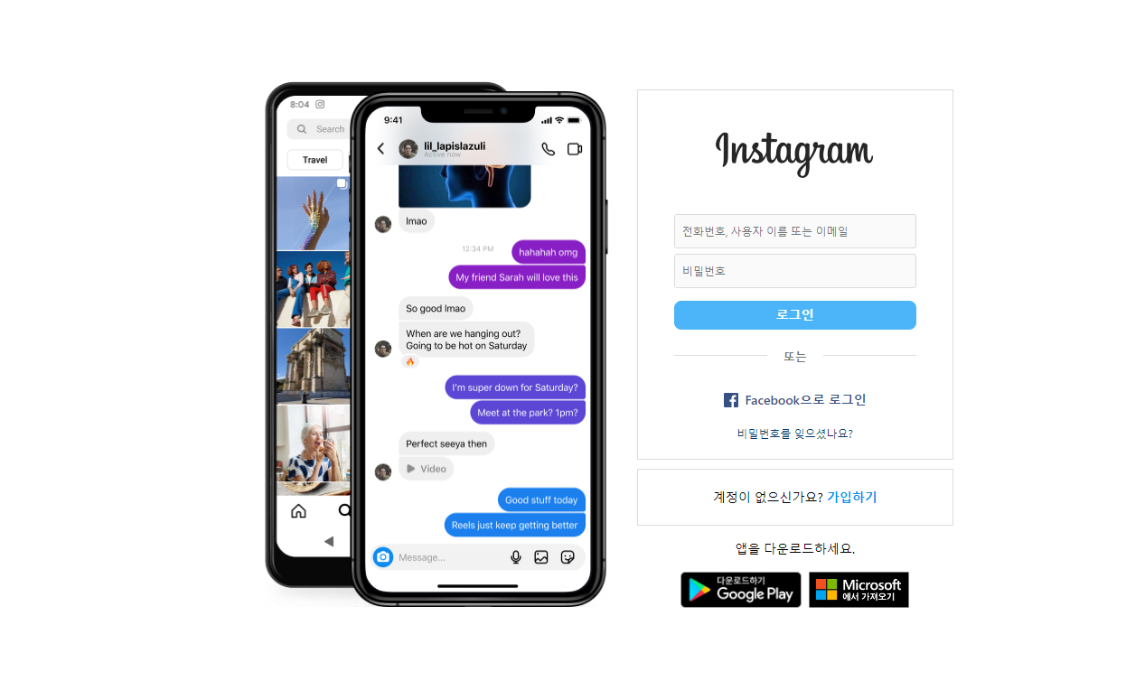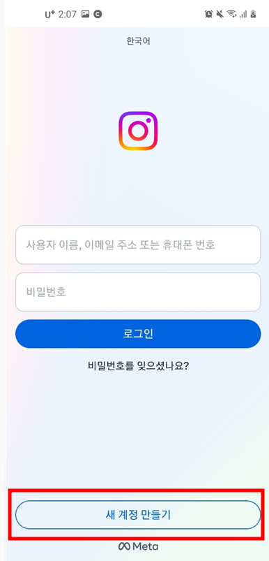 새 계정 만드는 방법에는 휴대폰 번호로 가입하는 방법이 있고 이메일로 가입하는 방법이 있습니다. 둘 중에 편한 가입방법을 선택하시면 되고, 페이스북 계정이 있으실 경우, 페이스북 계정으로 로그인하는 방법도 있습니다.