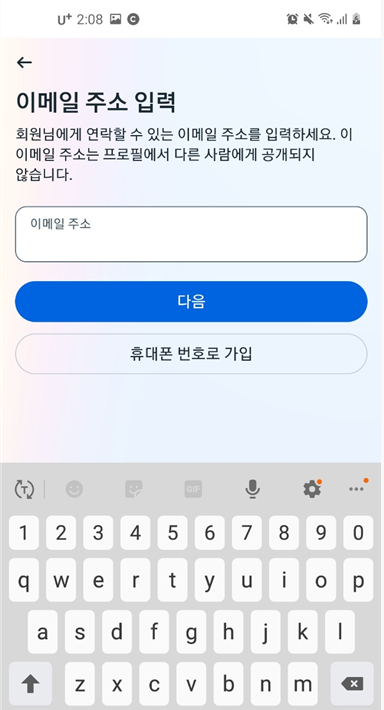 저는 이메일 주소로 가입 진행 해 보았습니다.