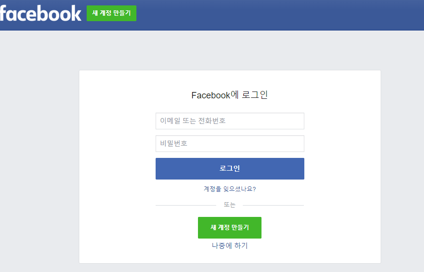 기존 페이스북 계정이 있으신 분은 페이스북으로 로그인을 선택하고 페북 아이디와 비밀번호 입력 후 로그인 하시면 됩니다.