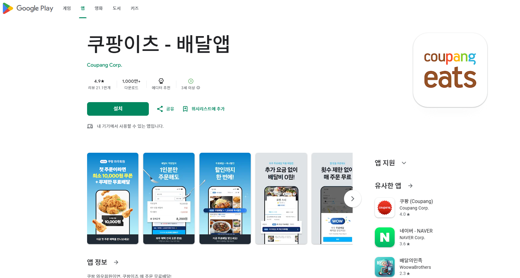 - 쿠팡이츠 관련 카테고리 선택 후 문제 해결