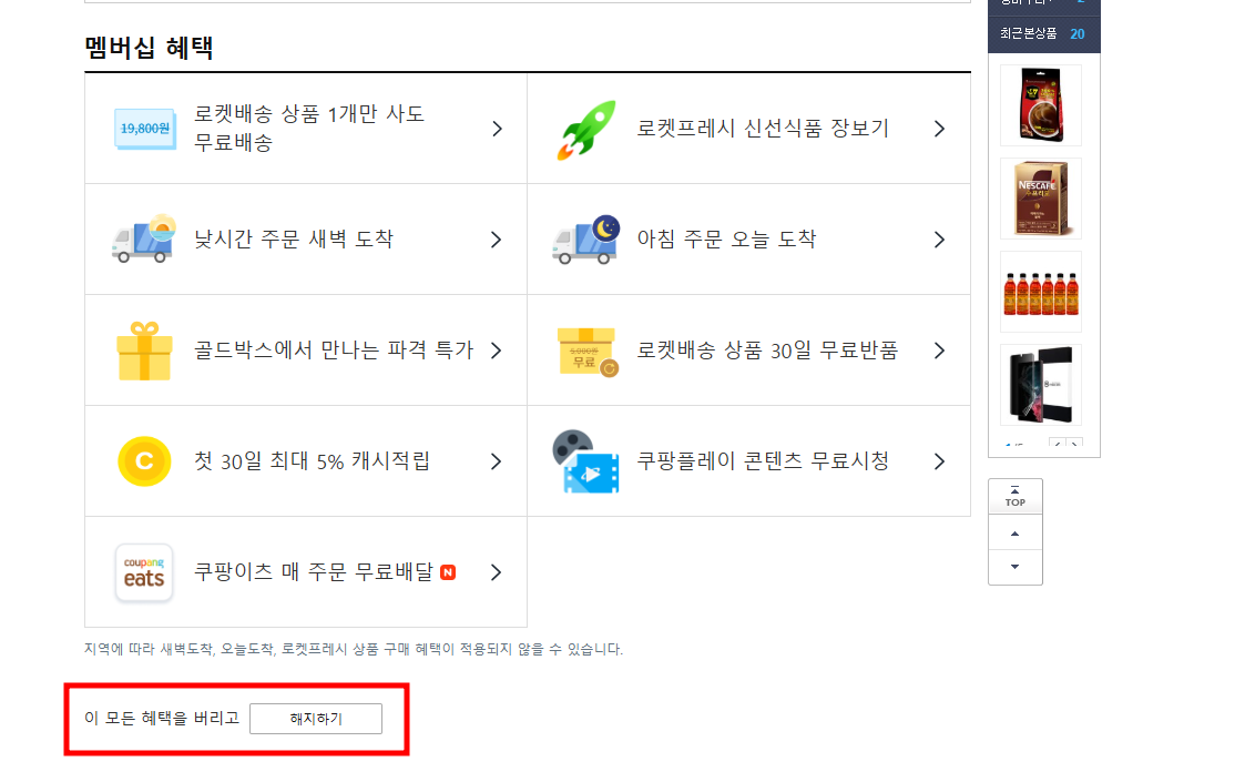 쿠팡 와우 멤버십 탈퇴 시 유의사항