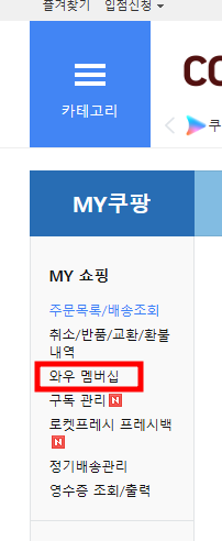 - '마이쿠팡' 페이지에서 '와우 멤버십' 옵션을 찾습니다.