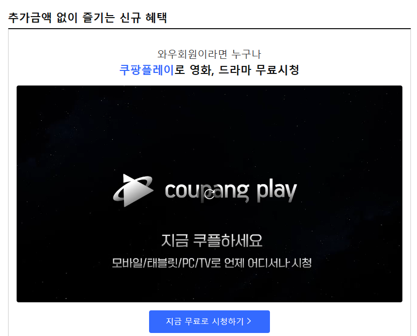 - 쿠팡플레이 무료 이용 – OTT 서비스인 쿠팡플레이에서 영화, 드라마, 스포츠 등을 무료로 시청 가능