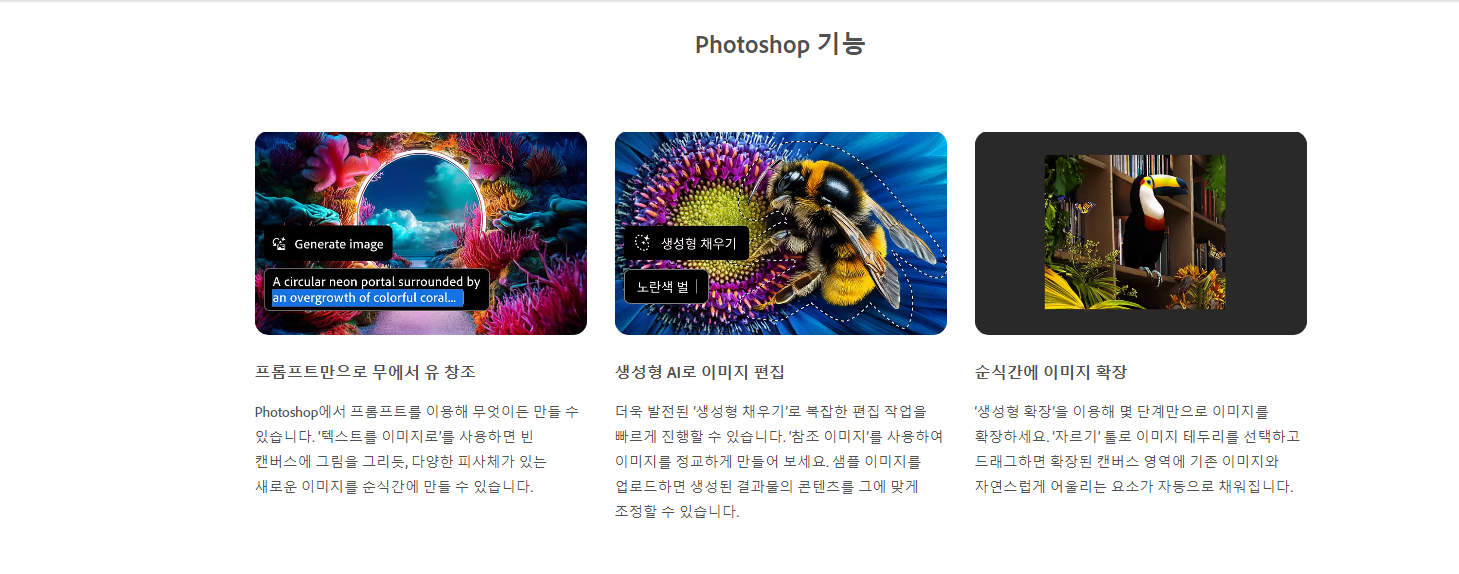 포토샵의 강력한 디자인 도구들과 생성형 AI 기능을 사용해보세요. 포토샵 무료 체험을 통해 창의적인 콘텐츠를 제작할 수 있습니다. 지금 무료 체험으로 시작해보세요!